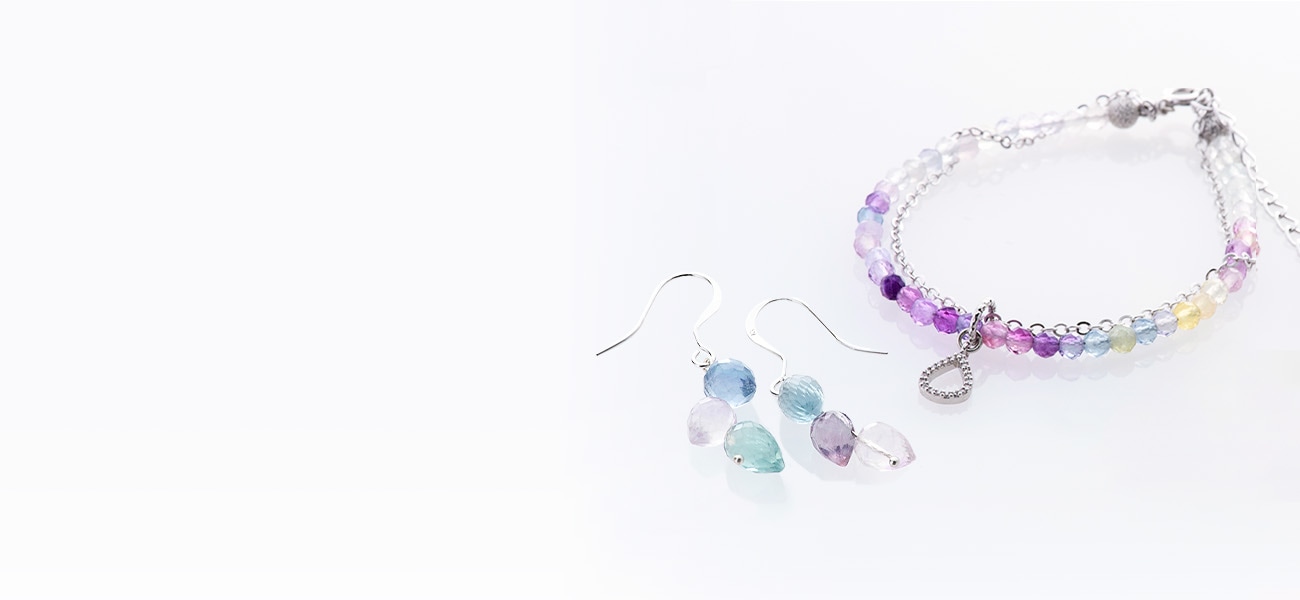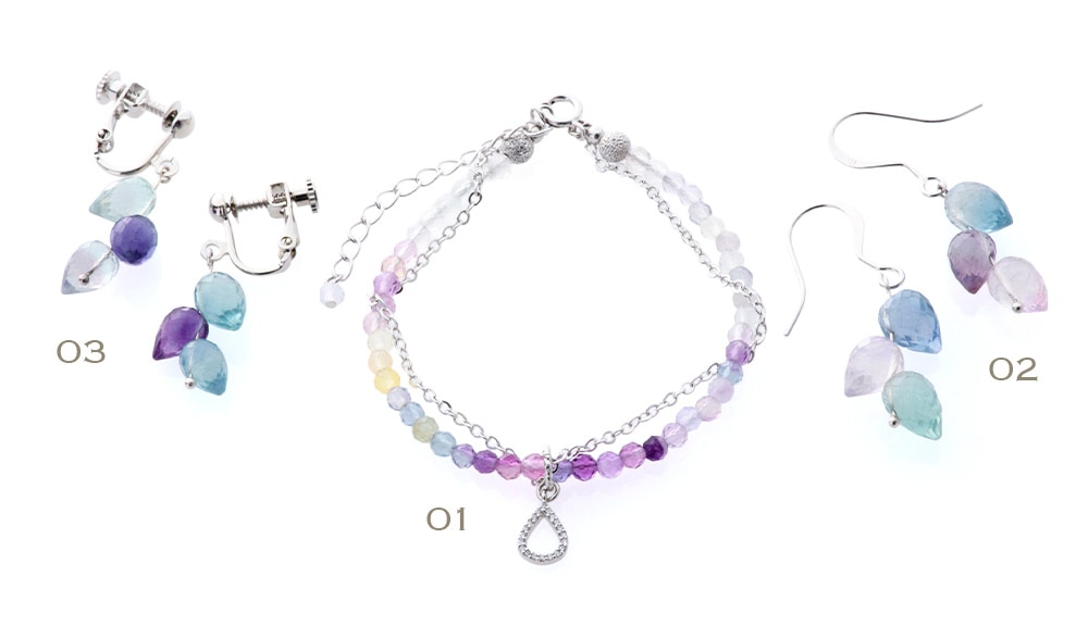 このエネルギーを宿したのが今回の「クリアフロージュエリー」です。使用するストーン「フローライト」のフローは、ラテン語の fluere(流れる)が語源。その名の通り、心と頭の滞りをそっと流し、本来のあなたを自然に浮かび上がらせるストーンです。身につけるほど思考がクリアになり、自分の感性を大切にしていけるでしょう。